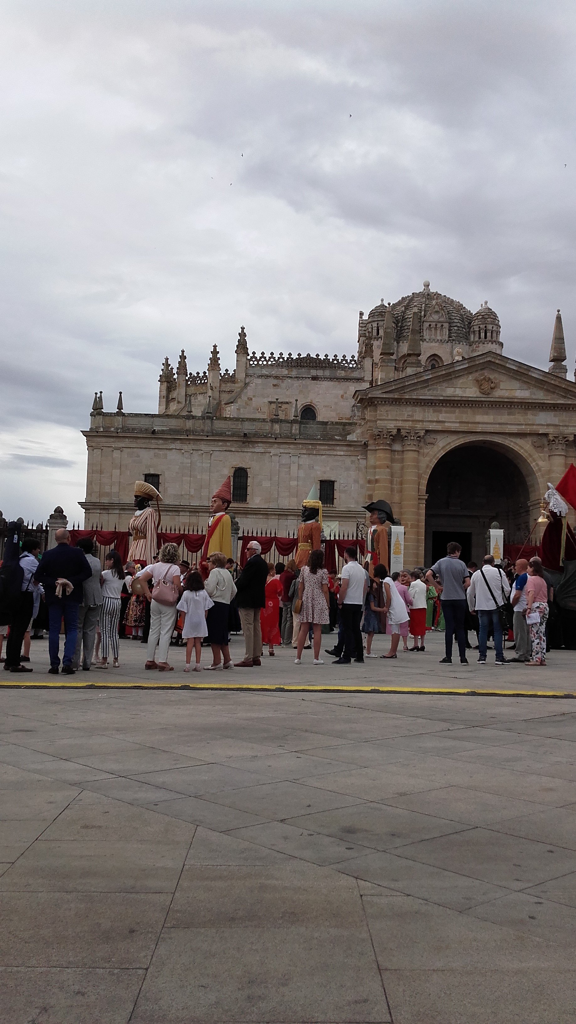 Tuvimos la suerte de coincidir con la celebración del día del Corpus en cuya procesión participamos algunas, después de haber oído la misa en la Catedral. Otras se encontraron con el grupo de Campaneros de Castilla y León ; que venían hacia la explanada de la Catedral repicando y tocando sus campanas. Estarán todo el fin de semana dedicado a este noble arte que cada vez avanza más en su recuperación.